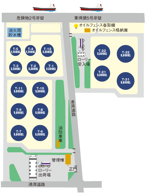 | 原油タンク | 5基(25,900KL) |