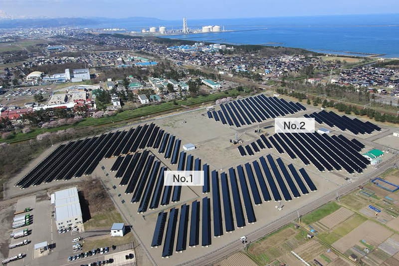 INPEXメガソーラー上越は平成25(2013)年3月より発電を開始し(下図No,1部分)、当社は同施設の運転管理を行っています。また、隣接する旧製油所跡地に(下図No,2部分)同規模の施設を建設し、平成27(2015)年7月より、あわせて一般家庭約1,600世帯分の年間電力消費量に相当する発電を開始致しました。