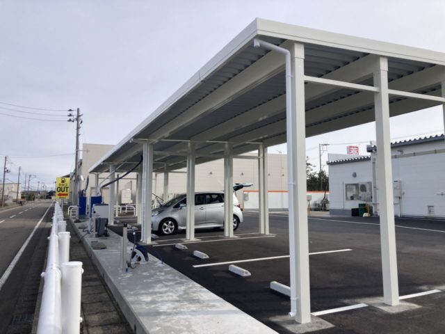 2025年1月25日(土)大潟サービス・ステーションの拭き上げスペース6台分に屋根を設置しました。